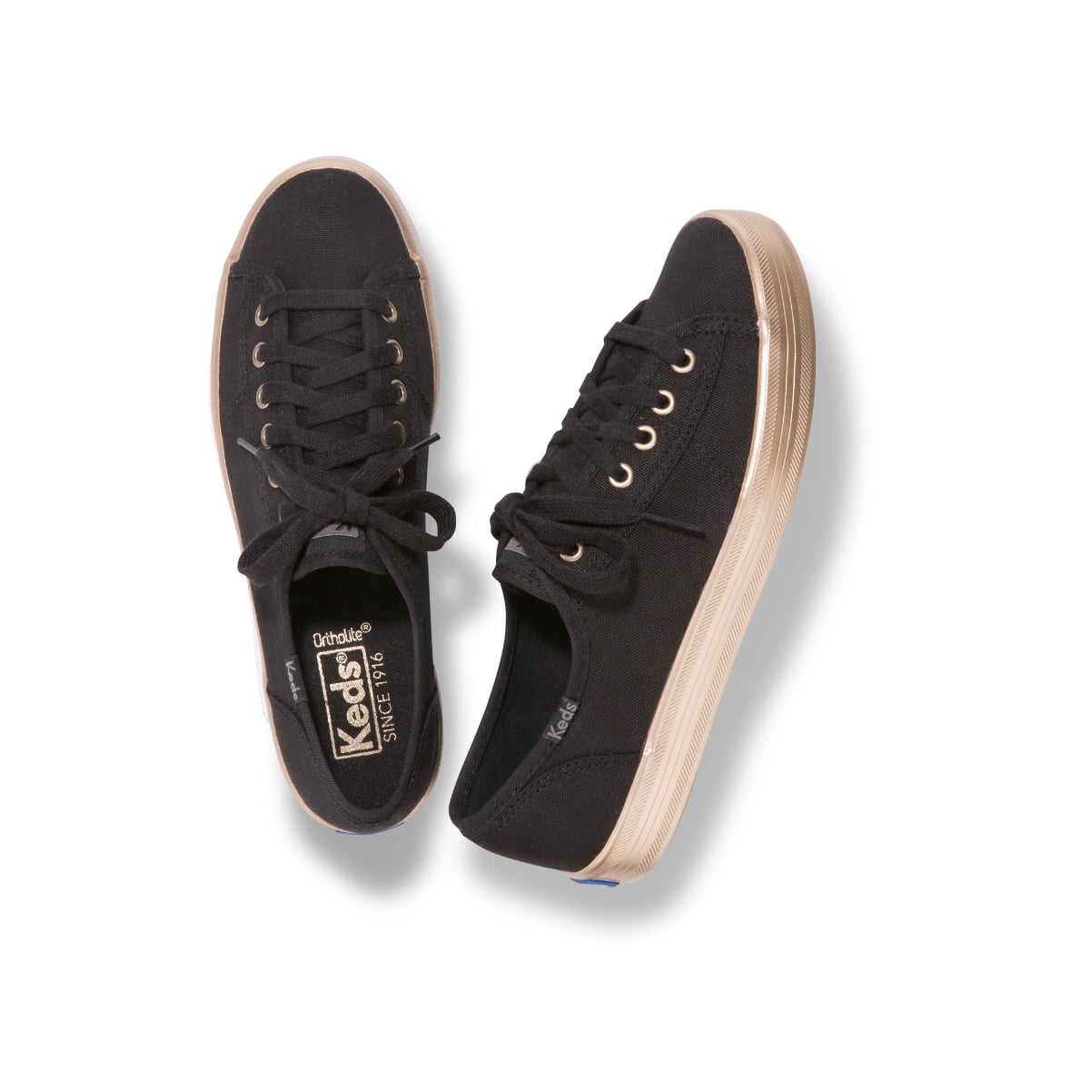 Μία μοντέρνα ματιά στο διαχρονικό αγαπημένο σχέδιο: το Keds Kickstart ακολουθεί την μόδα των μεταλλικών στοιχείων με την γυαλιστερή του σόλα, και προσθέτει στο κλασσικό look του παπουτσιού για τέννις μια πιο θηλυκή και περιποιημένη διάθεση.