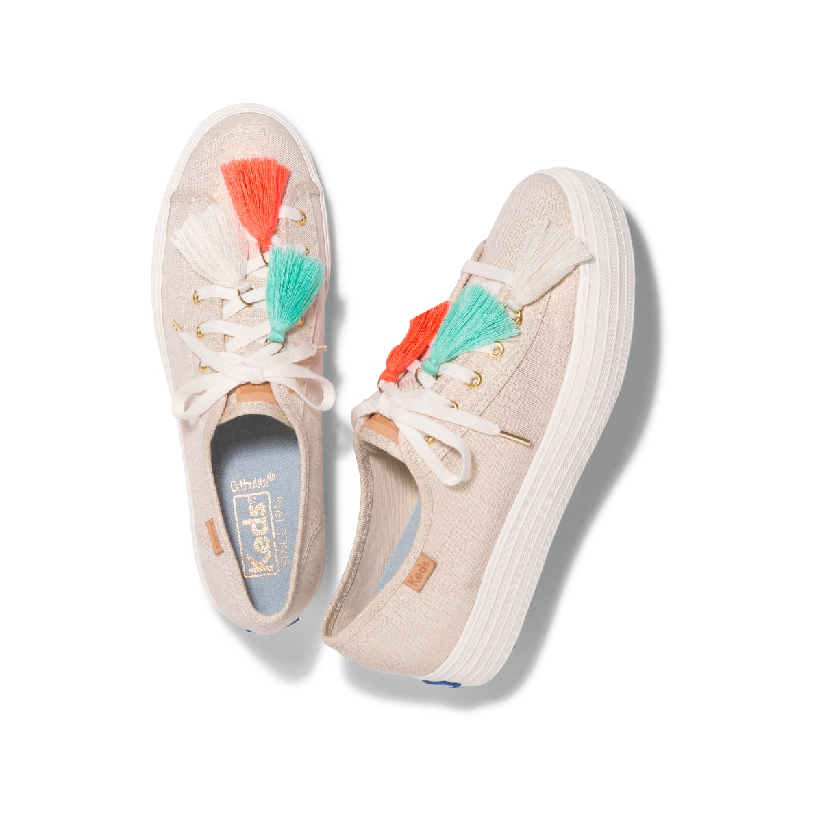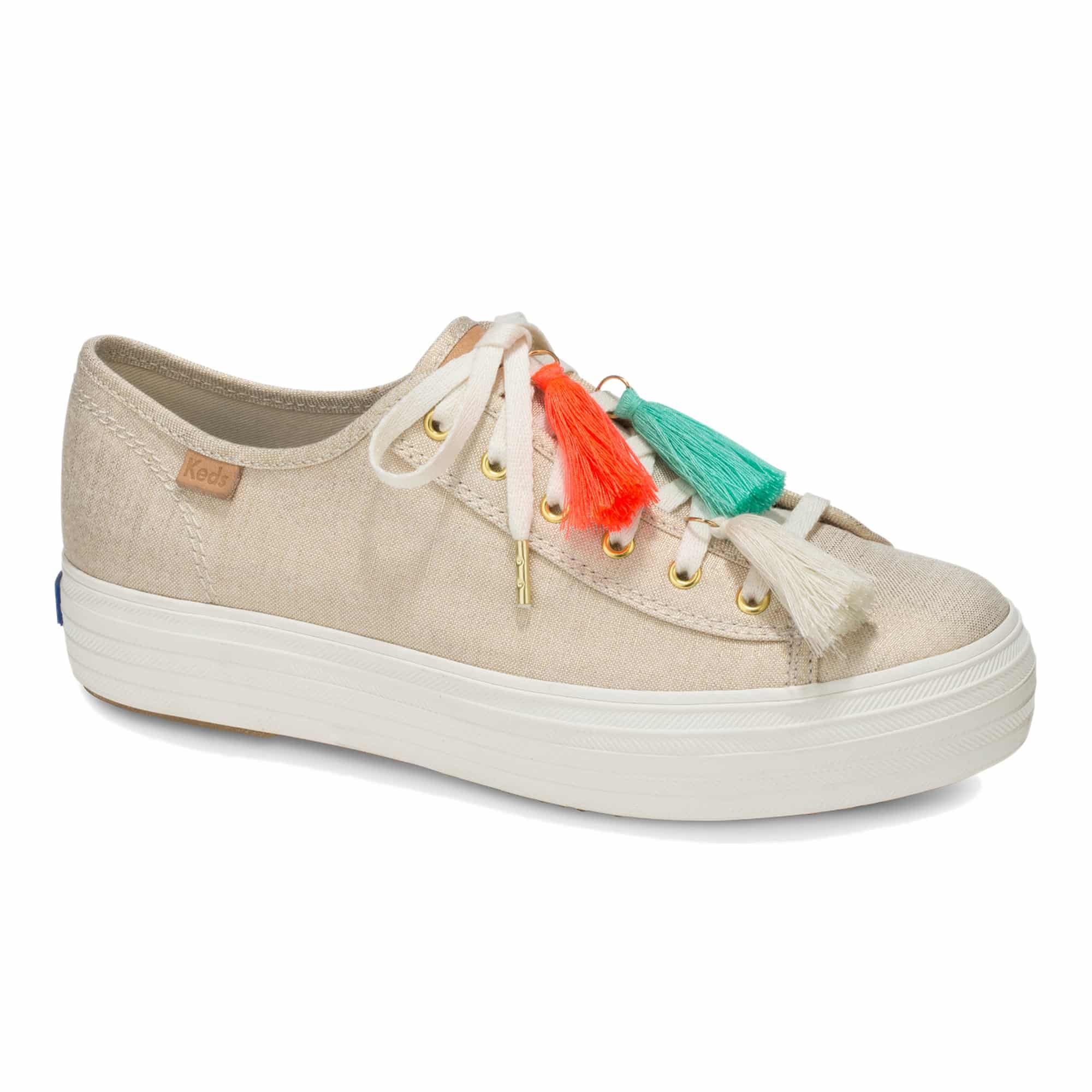 Ψάχνετε για ένα ξεχωριστό παπούτσι για να ανανεώσετε την συλλογή σας; Μην ψάχνετε άλλο: σας παρουσιάζουμε το Keds Triple Kick Tassel, ένα δετό sneaker με πλατφόρμα που θα κερδίσει τις εντυπώσεις. Θα σας προσφέρει τρομερή άνεση με τον αναπαυτικό πάτο από μαλακό αφρώδες υλικό.