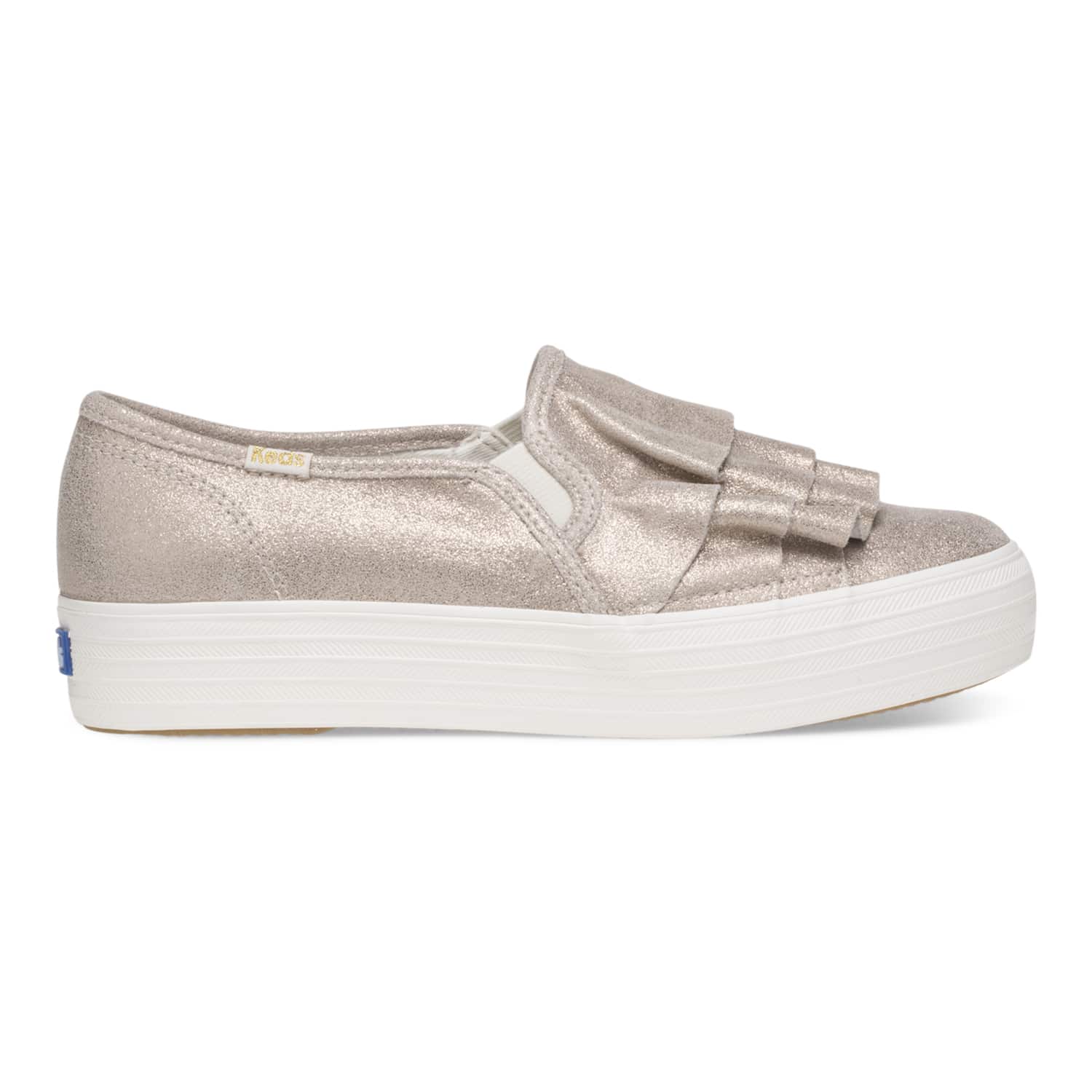 Δεν υπάρχουν πολλά sneakers που να συμπληρώνουν την εμφάνισή σας σαν το Triple Ruffle Glitter. Μαλακό, γυαλιστερό suede, και παιχνιδιάρικα βολάν μεταμορφώνουν ένα sporty slip on, σε ένα θηλυκό παπούτσι που θα ανεβάσει την διάθεσή σας, θα απογειώσει την εμφάνισή σας, και θα σας προσθέσει και λίγους πόντους!