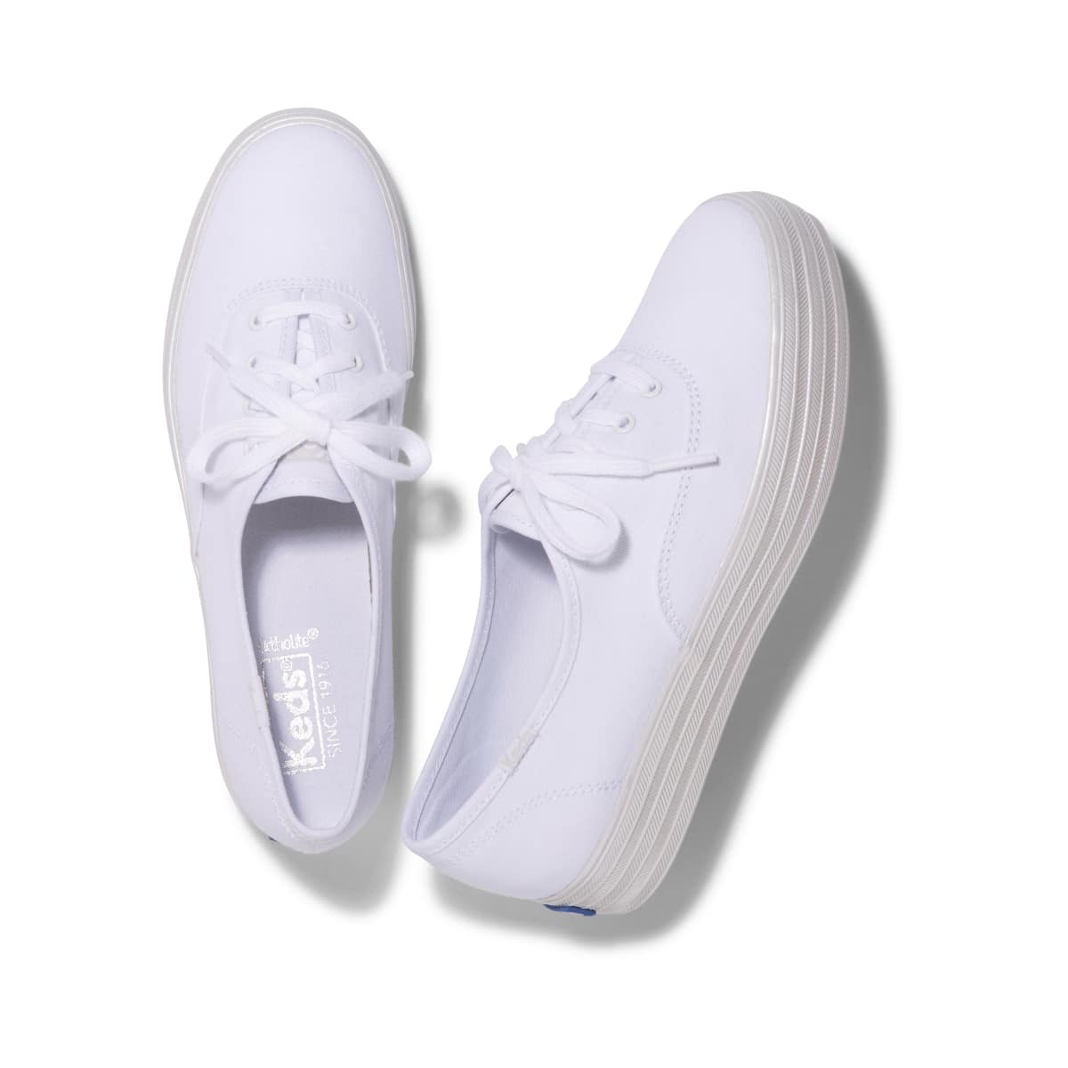 Το πολυπόθητο sneaker Keds Triple canvas, ανανεωμένο με μία απλή αλλά εξαιρετικά εντυπωσιακή λεπτομέρεια: μία λεία εξωτερική σόλα με έναν ελαφρύ τόνο γυαλάδας που τραβάει όλα τα βλέμματα.